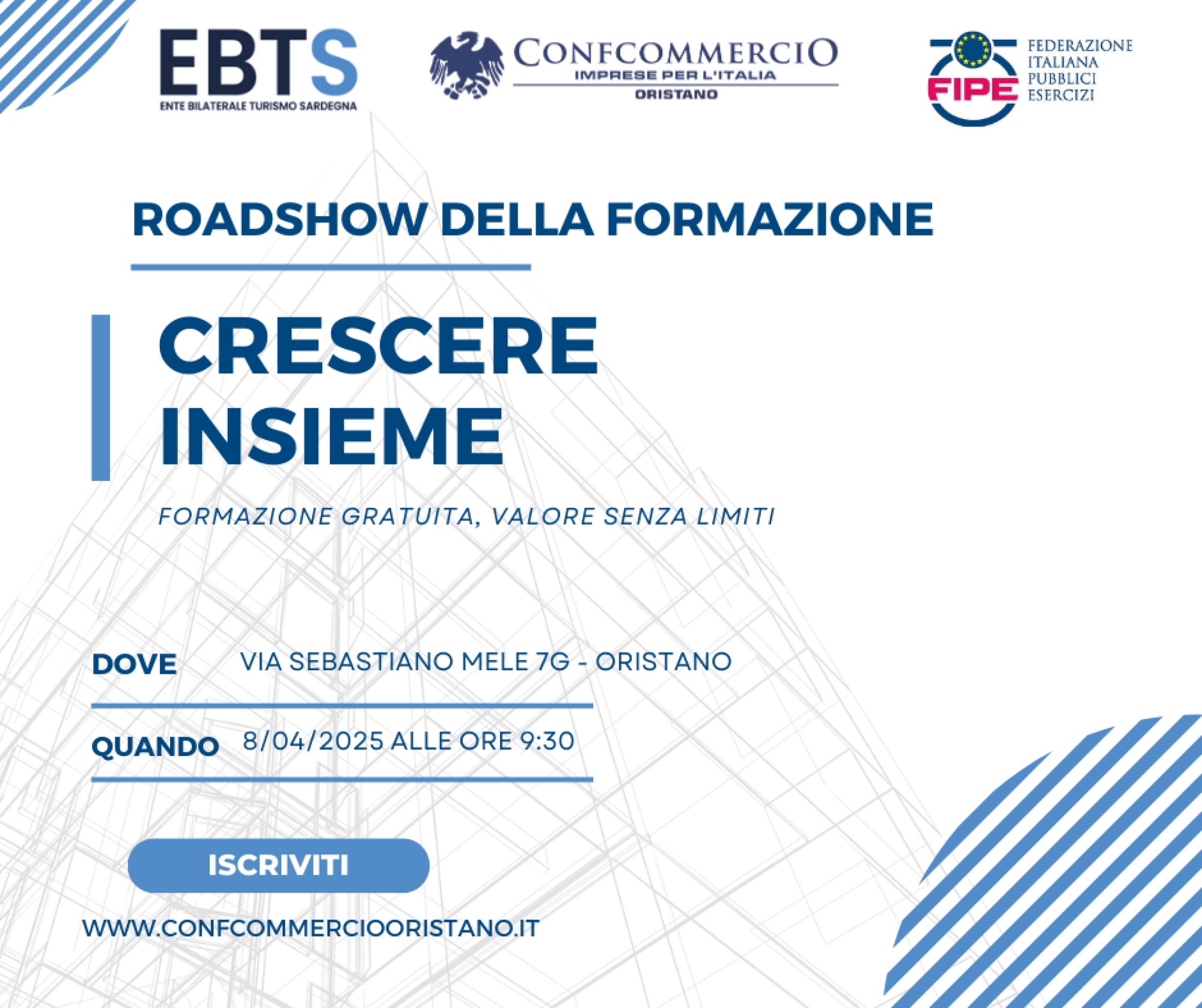 EBTS – Ente Bilaterale Turismo e FIPE Confcommercio Oristano invitano le imprese del settore turistico a partecipare all’incontro dedicato alla presentazione delle opportunità formative riservate agli operatori del comparto.