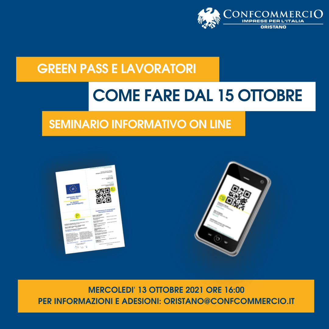 Abbiamo inoltre organizzato per Mercoledì 13 Ottobre alle ore 16:00 un seminario on line dal titolo “Green Pass Lavoratori” durante il quale cercheremo di dare risposta a tutti i dubbi sulle novità introdotte dal decreto, sulle procedure da adottare e sulle problematiche che sono già sorte o potrebbero sorgere in azienda.